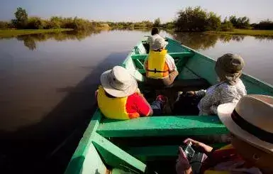 motor pirogue for a 3 hours optional excursion cruise on The Gambia River. First we head to the